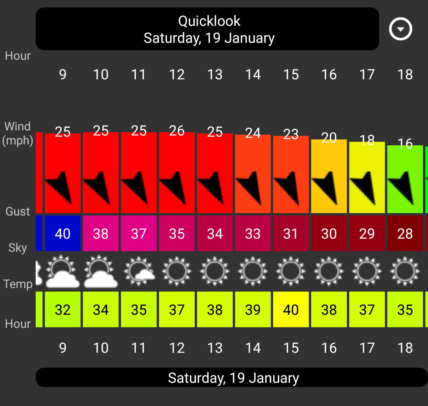 Tomorrows forecast is for 30 plus. We either have too much or too little wind. Races will be cancelled tomorrow.